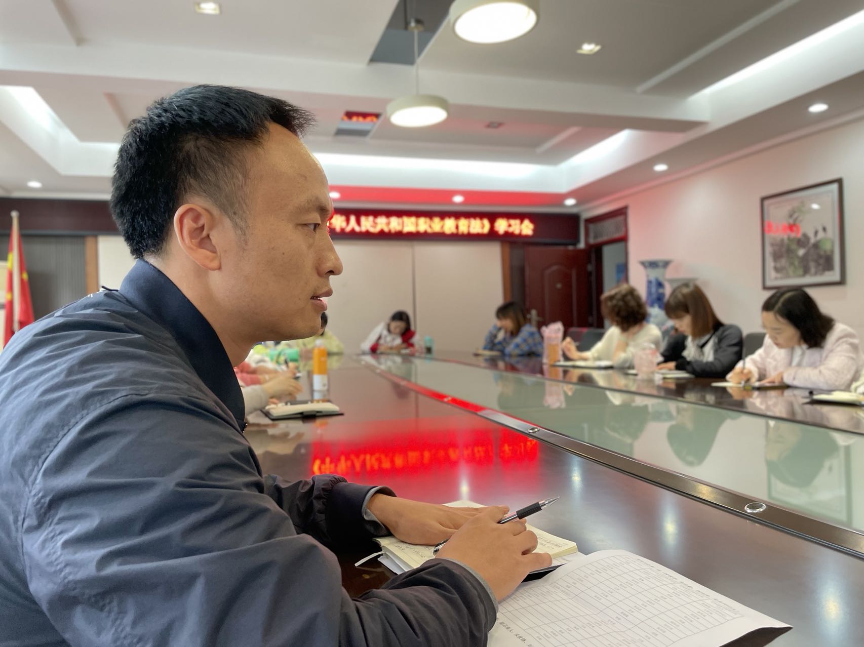会上,李丽萍同志带领大家一起学习了《中华人民共和国职业教育法》,李丽萍强调,本次职业教育法的修订首次明确了职业教育是与普通教育有同等重要地位,我们作为职业院校要充分学透吃透政策。
