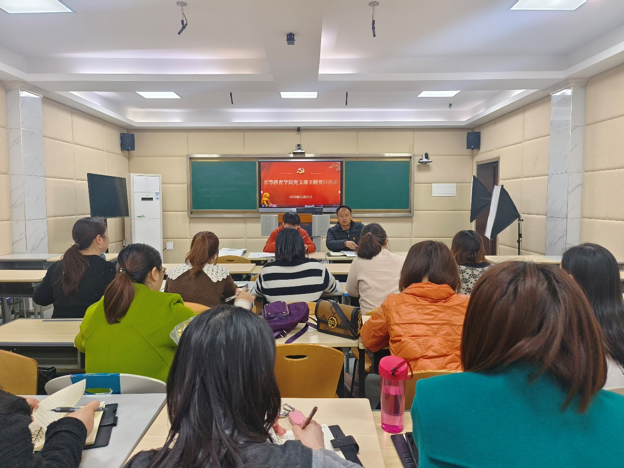 11月21日,初等教育学院党支部在行政楼401室开展了以"学习践行‘四下基层’、走深做实主题教育"为主题的党日活动,全体初等教育学院教师党员到场参加。