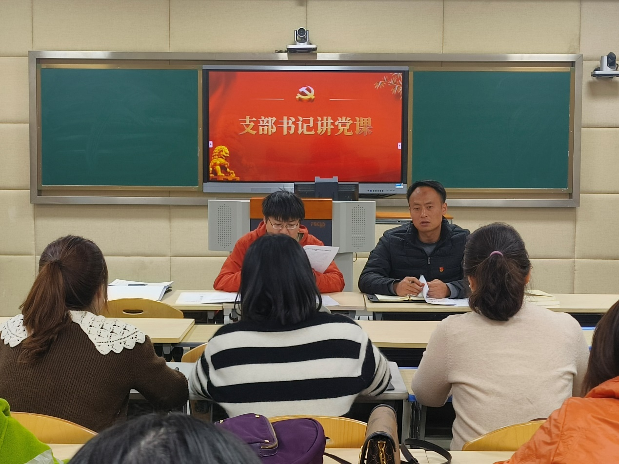 全体与会人员首先重温入党誓词、缴纳党费,学习党章。接下来, 由于海同志带领大家进行了"深化理论学习,‘四下基层’要‘到底’"的主题教育学习。首先,于海同志指出"四下基层"要"到底"即政策方针下基层要"见底";调查研究下基层要"知底";信访接待下基层要"兜底";现场办公下基层要"彻底"。广大党员教师要进一步增强坚定拥护"两个确立"、坚决做到"两个维护"的思想自觉、政治自觉和行动自觉,把习近平新时代中国特色社会主义思想学活学透,把党的路线方针政策弄清楚学明白。接下来,于海同志带领大家学习了习近平总书记最新重要讲话、重要指示批示和文章精神,有习近平总书记主持召开的进一步推动长江经济带高质量发展座谈会上的讲话;习近平总书记在中共中央政治局第九次集体学习时的强调;《求是》杂志发表习近平总书记的重要文章《开辟马克思主义中国化时代化新境界》。