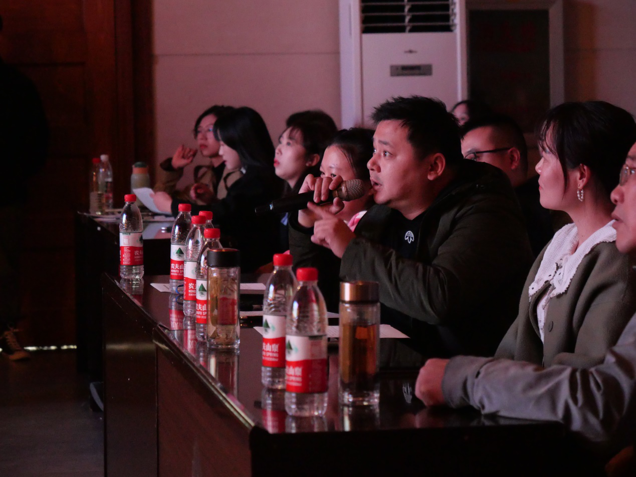 本场总决赛由ok兄弟组合带来的一首《南山南》拉开序幕,优美的旋律,动听的嗓音,给我们带来了一丝苍凉,悲怆的岁月感。《you raise me up》、《只要平凡》、《椿》、《喜欢你》、《卷珠帘》等一首首动听的歌曲牵引着同学们激动的心,高声呐喊,为台上每一位选手加油助威!《中国话》将现场的氛围推向一个新的高潮,点燃了同学们的激情。古风歌曲《卷珠帘》独特的唱腔,优美的歌词更是赢得了同学们热烈的掌声。比赛期间评委老师公平公正,精彩犀利的点评,更是为比赛增添了一抹绚丽的专业风采。