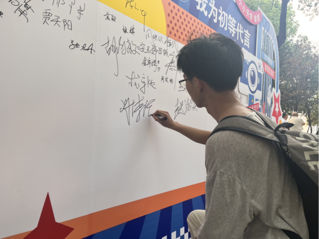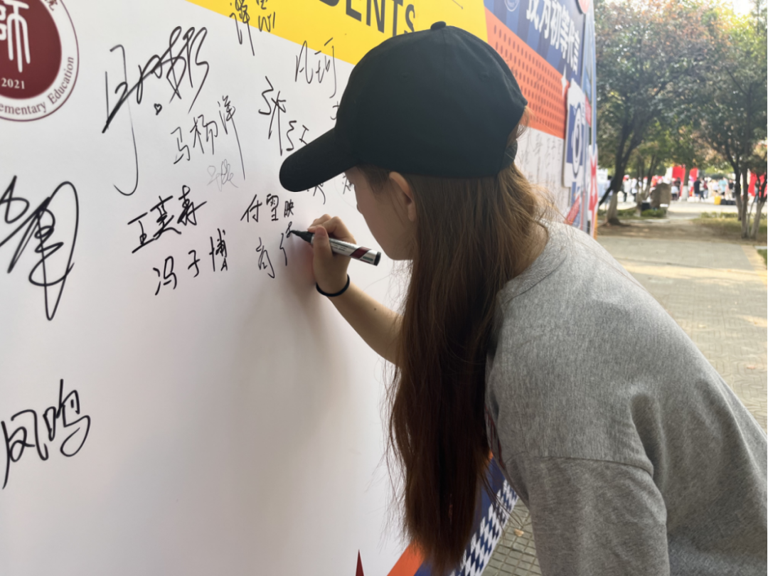 在迎新活动中,学院精心准备了特别的签名板,大一的同学们纷纷在上面留下了自己的姓名和寄语。此刻这个签名板不仅仅是一块简单的布告板,更是一片记录梦想与期盼的净土。每一笔签名背后,都是同学们对大学生活的憧憬与向往,见证了他们从高中生活到大学新篇的过渡。随着新生们的名字一一出现,这片签名板也逐渐变得熠熠生辉,仿佛在诉说着无数个年轻的梦想。我们相信,这些充满希望的签名将成为他们在大学旅程中美好回忆的起点。