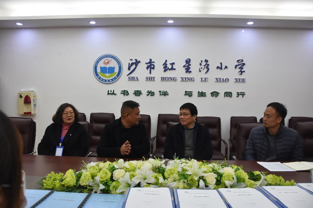 结束了张家三巷小学的走访后,潘校长一行紧接着来到了沙市红星路小学。"写好字,读好书,做好人"是红星路小学的校训,走进校园就能感受到他们浓烈的书香文化氛围。座谈会上,红星路小学的秦校长、邓副校长对于我院此次见习学生也是给予了高度肯定,他们认为"高学历≠高能力",对比于其他高校的见习生,我院学生在纪律性、责任心、重视程度上有明显优势,并对我院学生见习结束后再来红星路小学表示欢迎。在随后的交流环节,从同学们真切的言语中也不难看出,大家在此次见习中的收获还是非常丰富的。最后,潘校长也对红星路小学见习的同学们提出了要求与期望,他反复强调希望同学们要以"有理想信念、有道德情操、有扎实学识、有仁爱之心"的标准严格要求自己,努力奋斗,争做新时代的"四有好老师"!