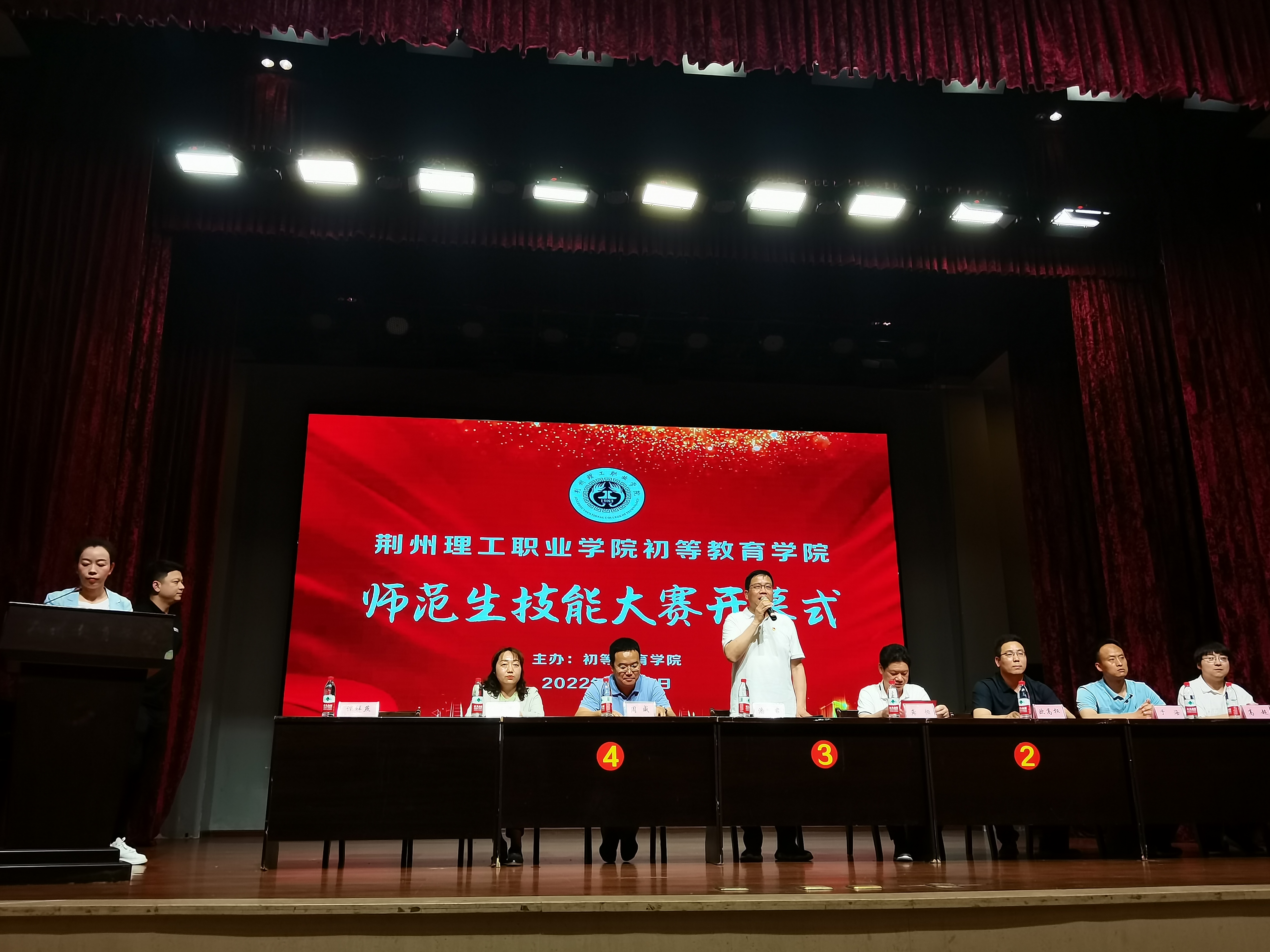 为提升我院师范生专业技能和教学能力水平,达到以赛促学、以赛促练的目的,2022年4月26日,初等教育学院首届师范生技能大赛在东校区艺术楼演播大厅正式拉开帷幕,校长潘贤君、副校长龚恒、教务长周威、教务处副处长欧高权和初等教育学院全体教师出席,200余名学生到场参加开幕式。