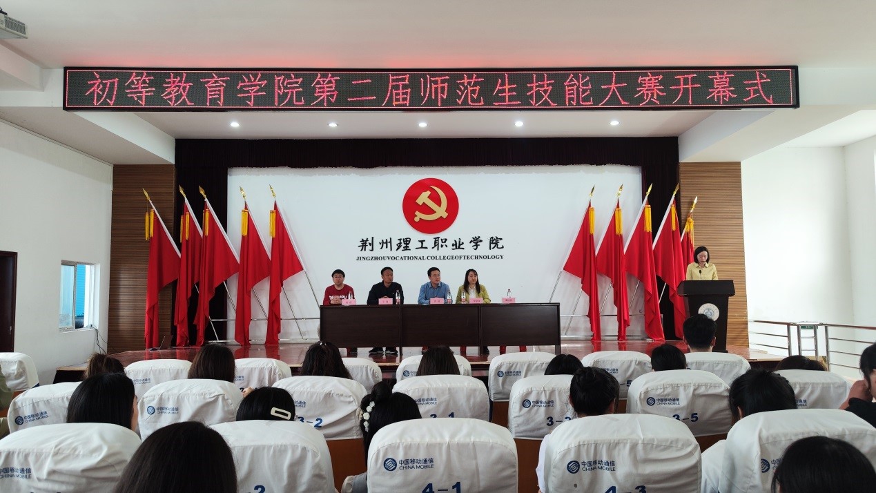 为提升我院师范生专业技能和教学能力水平,以赛促学、以赛促练,并为省小学教育专业技能大赛发现人才、储备人才,2023年4月11日,初等教育学院第二届师范生技能大赛在中校区学术报告厅正式拉开帷幕,荆州理工职业学院教务长周威、初等教育学院全体教师出席,200余名学生到场参加开幕式。