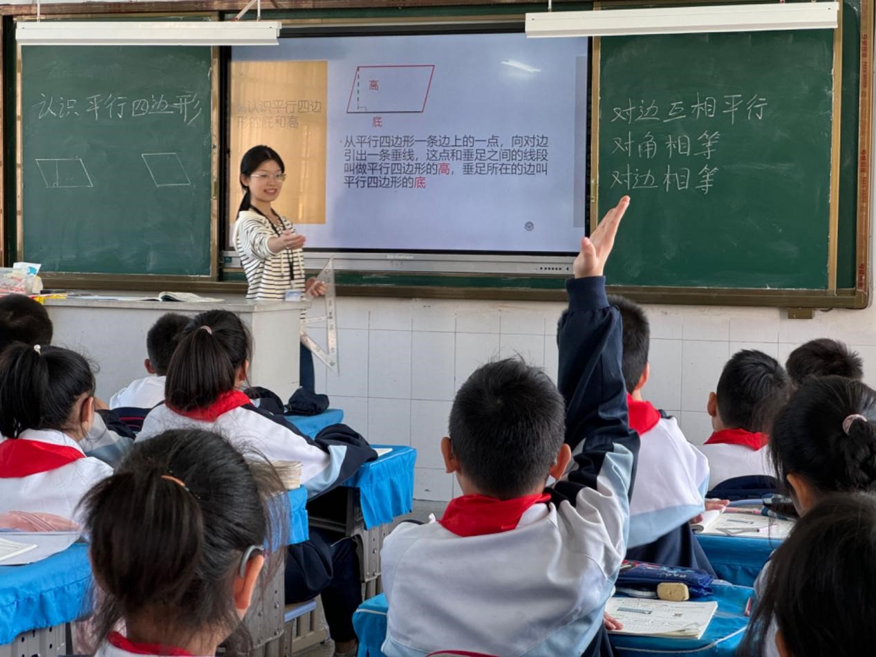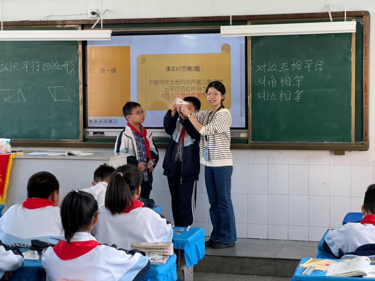 为检验我院学生的见习成果,潘贤君一行走进教室现场听课。本次听课的班级为四年级一班,来自我院21级小学教育5班的戚欣同学讲授了一堂完整的数学课《平行四边形》。课堂上,戚欣同学教学思路清晰,教学过程完整平稳,课堂活动开展有序,教态自然大方,初步展示了作为一名准教师应有的专业素养。