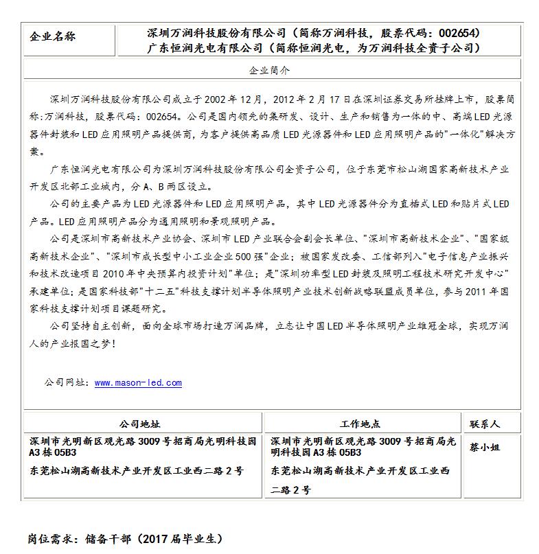 详情请登录公司官方网址:或输入"万润科技"、"002654"www.mason-led.com