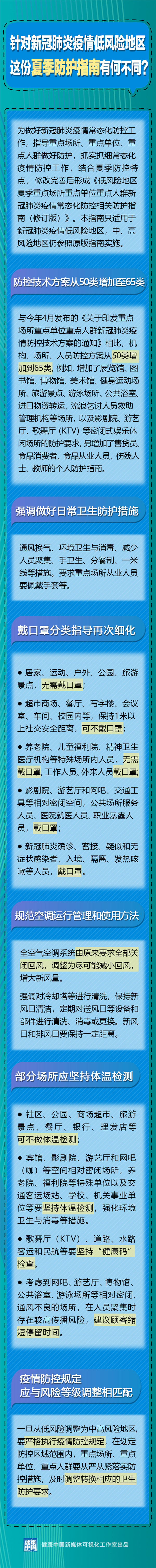 官宣:针对新冠肺炎疫情低风险地区,这份夏季防护指南有何不同?