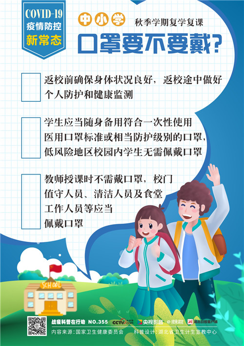 秋季学期复学复课口罩要不要戴? 疫情防控新常态