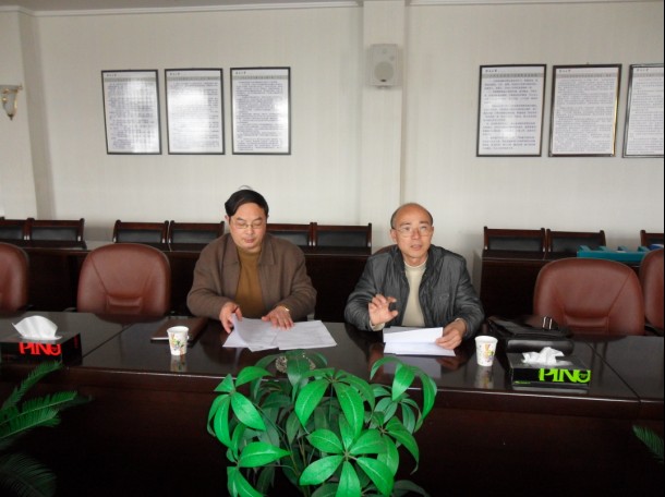纪委黄永平书记、后勤管理处罗仁杰处长在评标会场就项目情况