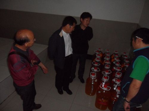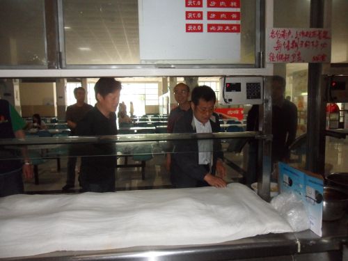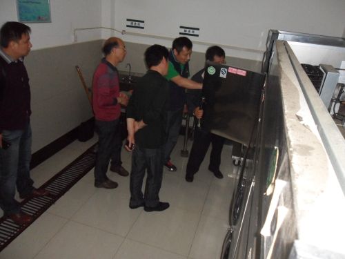 姜处长查看食堂成品油