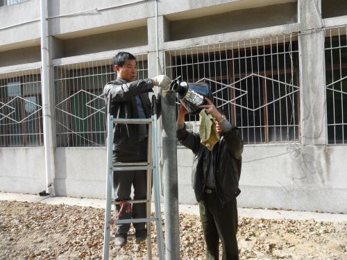 后勤管理处工作人员利用废旧材料改装庭院灯