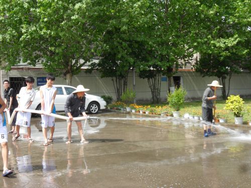 日上午,后勤管理处全体工作人员冲洗校园主要道路,喜迎学院挂牌。