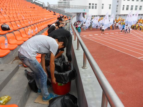 2014年8月27日至10月7日期间,后勤管理处认真做好省运会排练期间休育馆学生演员休息区域环境保护工作,自备垃圾桶与垃圾袋,对每天彩排期间所产生的生活垃圾及时处理,受到了组委会的充分肯定与表扬。