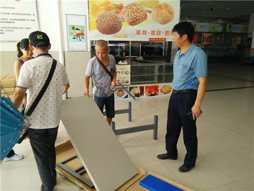 日,学院纪委组织计划财务处、学生工作处、后勤管理处对集体询价采购的食堂餐桌椅、学生公寓钢木椅进行质量验收。