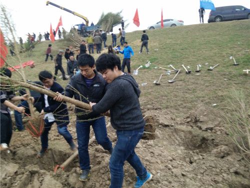 2015年3月17日上午,后勤管理处响应市委号召,组织公益劳动课部分学生参与义务植树造林活动。上午9时,大家乘车来到植树点,学生人手一把植树工具在植树现场迅速掀起了植树劳动的热潮,大家相互协作,相互比拼,有挖坑的,拉线的,下树的、回填的,每道工序都认真对待,一丝不苟,确保树木成活率,努力做到种一棵成一棵,种一片绿一片,各个忙得不亦乐乎。经过一上午的劳动,光秃秃的土地上一排排新栽的苗木整齐成行,生机焕然。