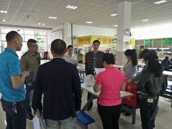 为进一步了解师生对食堂超市服务工作的满意度,不断收集广大师生对食堂工作的意见与建议。根据学校相关精神,后勤管理处于4月20日在食堂开展"食堂超市服务满意度测评"活动。中午十一点三十分,纪委书记黄勇带领学校办公室、学生工作处、后勤管理处等部门工作人员在食堂发放"满意度测评问卷"进行调查。