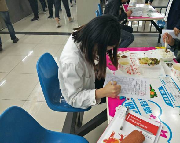 此次满意度测评活动以在食堂就餐的师生为调查主体,针对食堂管理、饭菜质量、服务态度、饭菜及超市商品价格以及整体满意度等方面进行了测评调查,力求做到真实、客观,测评采用不记名、当面答卷和随答随收的方式进行,共计发放回收110份测评表。4月28日下午,将调查的结果及意见跟食堂的负责人进行了反馈。