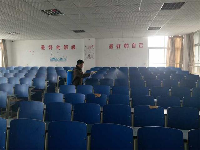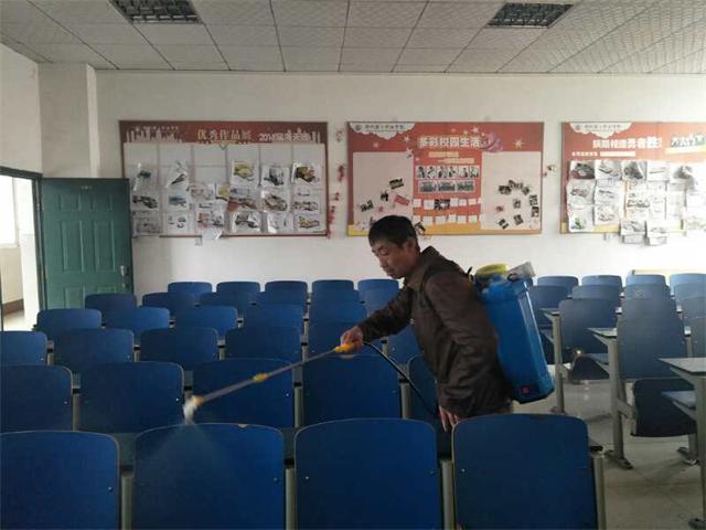 为落实市教体局《关于开展市直教体系统"清洁家园,共享健康"主题爱国卫生运动的通知》的文件精神要求,进一步加强校内春季流行性疾病的防控,为广大师生营造一个舒适、卫生的学习和生活环境。3月18日上午后勤管理处工作人员对科教楼,喷洒消毒药剂进行消毒。