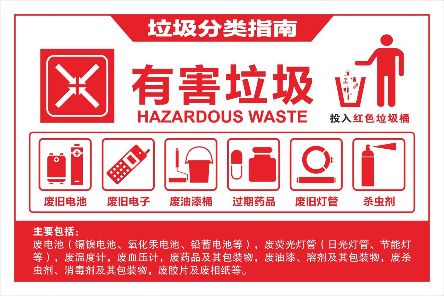 有害垃圾收集容器为红色