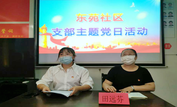 会议第二项,由工作组组长荆州理工职业学院副校长田远芬教授讲党课。田远芬同志从"不忘初心、方得始终;抗击疫情、彰显初心;下沉社区、服务群众"这三个方面来讲解本次党课。党课中,田远芬教授用慷慨激昂的情怀和铿锵有力的声音送上对党生日的祝福,带领全体党员重温了中国共产党的党性。从党的"根本性问题、集合性问题、永恒性问题"来说明中国共产党的自我革命任重道远,从实践性来看,党需要听到更多人民群众的声音和意见,要自觉接受人民群众的监督。接着从2020年初爆发的疫情来说明中共党员发挥的战斗堡垒、先锋模范作用,是抗击疫情的中流砥柱。疫情中,一名党员就是一面旗帜,就是一种信仰。他们是最美丽的逆行者----一线战士,最温暖的贴心人——志愿者,最和谐的共同体——社区居民,最强大的支持者——全国人民,最睿智的领导人——党的领导。这些最可爱的人,用热血和生命讲述着最感人的故事,讴歌党的领导和制度的伟大,宣讲党的方针和惠民政策,传递最温暖的光,最坚定的信仰和最磅礴的力量!最后,田远芬教授以马克思主义的创始人之一,全世界无产阶级和劳动人民的革命导师,无产阶级的精神领袖,国际共产主义运动的开创者马克思为例,来阐释马克思主义者爱的对象和实现方式——爱亲人、爱朋友、爱无产阶级(人民) ——人类的自由与解放……这个爱是现实而不是抽象的爱、是需要奋斗才能实现的爱。比如做好事不留名的雷锋同志;心怀天下,一生殚精竭虑为国为民国周恩来总理,以及我们身边的各位普通党员和社区居民等。他们都有一颗爱亲人、爱朋友、爱国、爱党的心……比如东苑社区第一党支部杰出代表吴冬全书记:近80岁高龄积极参加社区活动、支部活动从不缺席;——东苑社区第二党支部杰出代表向娟书记:抗击疫情中,勇做志愿者,做党和人民最贴心的一块砖;——东苑社区第三党支部杰出代表舒文训书记:心中有大义,处处勇担当。老骥伏枥,壮心不已。东苑社区第四党支部杰出代表邓捷书记:忠诚党的教育事业。学高为师,身正为范,热心公益,胸怀社区。东苑社区第一党支部杰出代表退伍军人:许睿,抗击疫情中,勇做志愿者,铁血男儿,柔情护民。东苑社区第三党支部杰出代表可敬大姐:胡云霞,牺牲小我,彰显家国情怀,顾全大局,共建美丽家园。东苑社区第四党支部杰出代表热心大哥:刘天镍,热情似火,温暖家家户户,温馨帮扶,远亲不如近邻。东苑社区晨夕志愿者服务队杰出代表志愿天使:陈传秀队长,赠人玫瑰,手留余香,昔日铿锵玫瑰,今朝志愿之魂。田远芬教授说:"马克思主义起点上的初心是解放全人类!中国化马克思主义的初心是为中华民族求解放,为中国人民谋幸福!在马克思主义者那里,人类、国家、民族、集体、个人的发展具有高度的一致性。能够成为一个马克思主义者,光荣而幸福!田教授富有感染力的授课获得了在场全体党员的热烈掌声。党员们都说,感谢田校长用讲故事讲心声讲信念的方式带领大家重温党的生日,带领大家凝心聚力,用政治生日,重温初心。