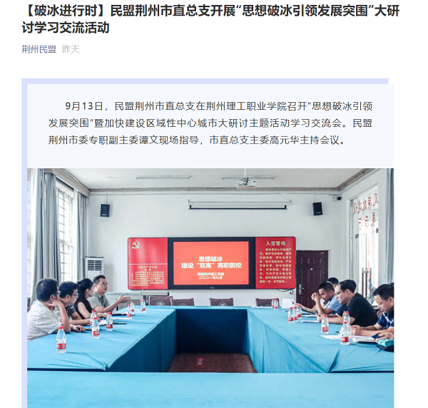 【破冰进行时】民盟荆州市直总支开展“思想破冰引领发展突围”大研讨学习交流活动