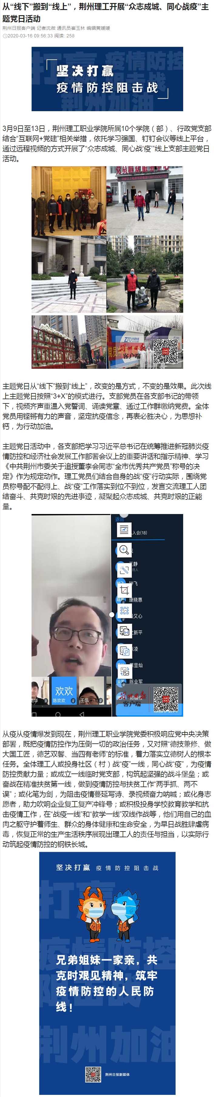 荆州日报点赞我校线上主题党日活动