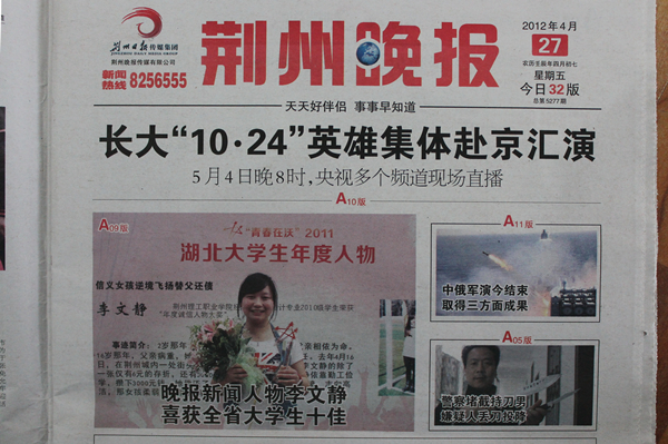 [荆州晚报]晚报新闻人物李文静喜获全省大学生十佳