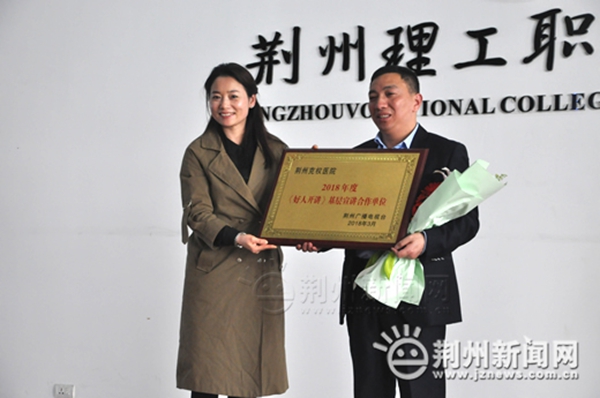 宣讲结束后,荆州广播电视台党委员、副总编辑兼新闻频道总监江敏为基层宣讲合作单位荆州克权医院授牌,《好人开讲》将每月开展一次基层宣讲活动。
