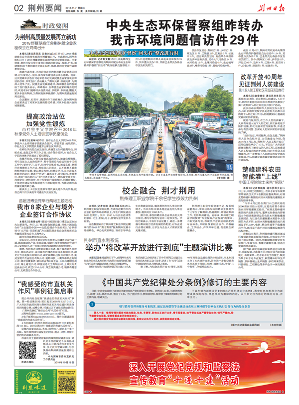 《荆州日报》报道我校——校企融合荆才荆用 荆州理工职业学院千余名学生欲效力荆州
