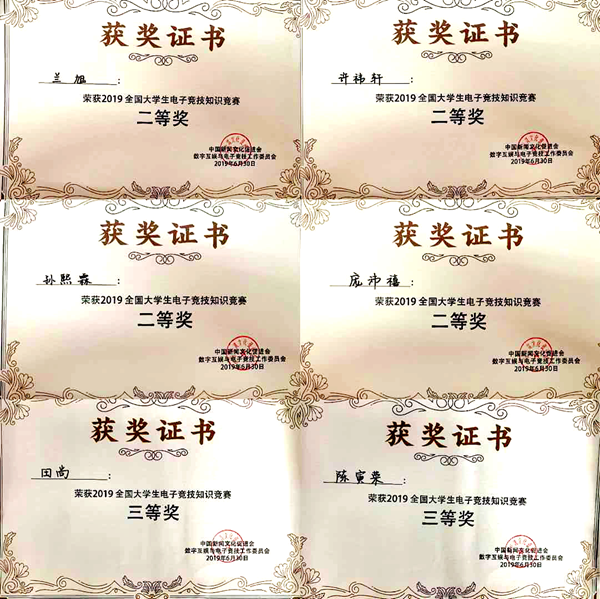 热烈祝贺我校代表队参加2019年全国大学生电子竞技知识竞赛荣获二等奖佳绩!