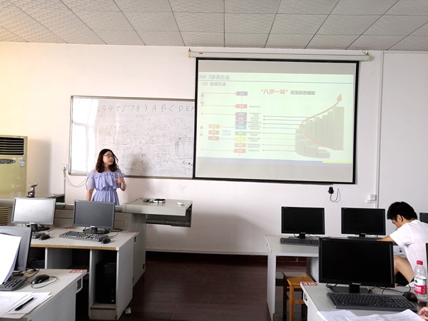 8月22日上午,商学院在科教楼704教室开展校内第二轮诊改工作复核"说课程"比赛。比赛按照学校工作要求,分为选手15分钟汇报展示、评委纸质评分和全员网上评分、评委总结点评三个环节。商学院推荐课程汇报的是电子商务、保险、会计3个专业的10门核心课程,分别由陈锐、盛海召、刘庆、熊燕妮、徐菁、杨艳、戴双、柳舒、刘尊、余在敏等10名教师进行15分钟的说课。后勤管理处、基建处、继续教育处、计财处等职能部门的工作人员观摩了比赛。