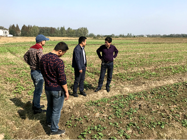 秋冬季节,油菜苗正茁壮生长,龚校长与村干部们一起走在田间地头,共同交流意见,探讨如何有效利用土地,让农民增产增收,为建设美丽乡村出谋划策,让王家巷村的美丽乡村建设早日实现。