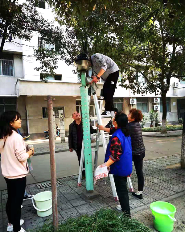 清洗校园路灯