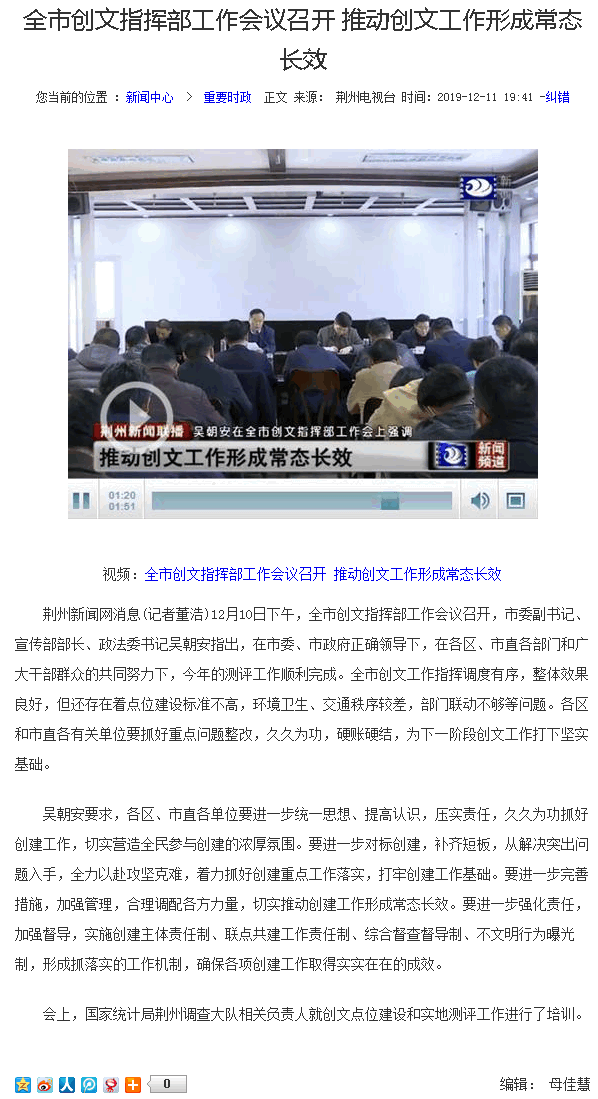 上一篇 : 【荆州创文专题报道】创文进行时:全市各单位各部门积极投身创文工作