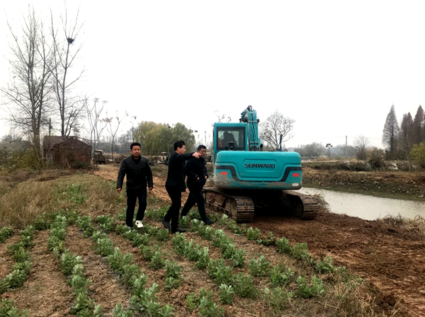 下午,龚校长一行又赶到联系点王家巷村,听取村支部熊书记介绍当前村里开展的工作情况。一是两村合并后连接道路路基扩宽工程已破土动工,二是本村沟渠的血防整治工作,三是河道拆违已基本完成。根据汇报情况在书记、主任的带领下视察了血防整治、河道拆违情况,最后到达道路路基施工现场,看到了砖渣底层,新鲜的土面,装载的车辆和工人有条不紊的劳作,更听到了挖掘机的轰鸣声,眼前呈现出一片热火朝天的景象。龚校长嘱咐村委熊书记充分利用好冬季地表水位低的最佳时夯实地基,为来年春上混凝土的铺设确保工程质量。