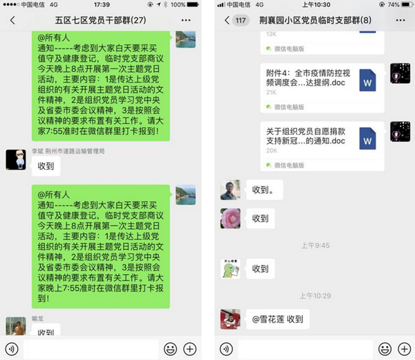 各临时支部通过QQ、微信等线上方式在各片区党支部工作群同步召开了主题党日活动。