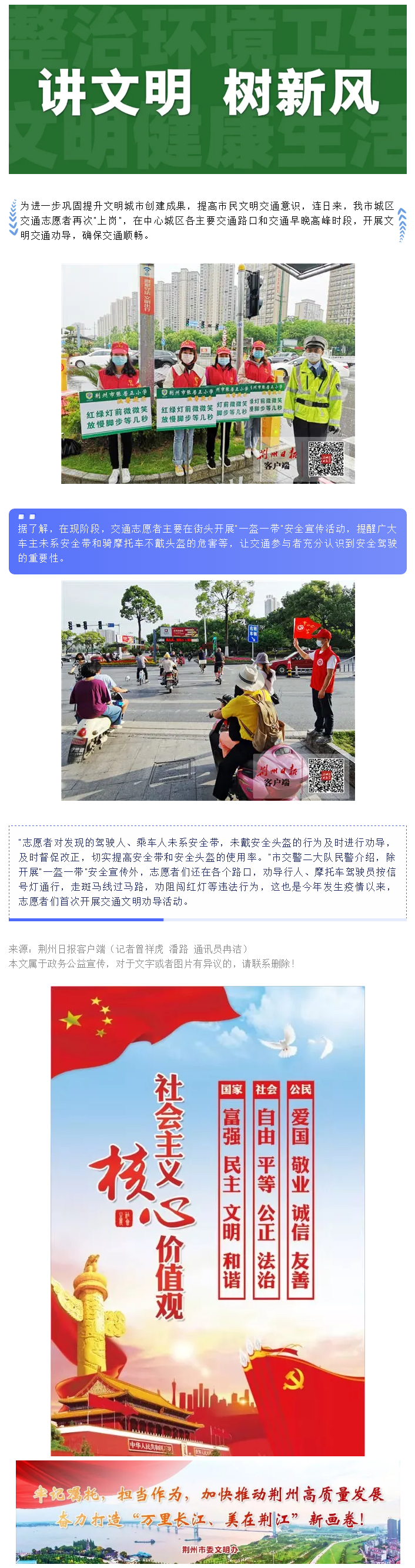 创文行动 | 荆州“志愿红”助力“一盔一带”安全宣传