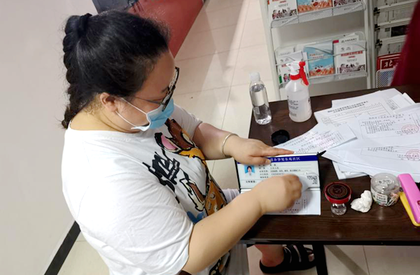 社区工作人员热情、真诚接待每一位报到的党员,因为雨很大,来报道的党员同志有的已经全身淋湿,但是单位开的报到单被捂在口袋里保存得干净整洁。党员报到和接待工作在社区蒋书记、陈书记,社区工作人员程丹、张冬芫、左惟芬、王琳、黄萱、余梦圆等共同努力下,有条不紊地进行。中午12点,报到工作仍在进行。程丹负责给党员任务卡确认盖章,张冬芫负责将任务认领卡裁剪好后发给下沉党员。为你们的敬业点赞!
