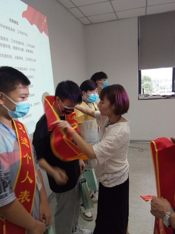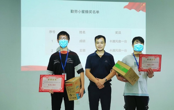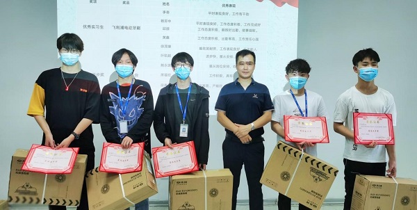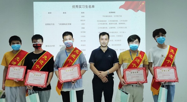 接下来是表彰环节,有来自模组一厂、模组二厂、质量保证部等部门,共计13人获得了实习荣誉称号。其中优秀实习学生5名、最佳实习进步奖5名、实习"勤劳小蜜蜂"荣誉称号3名。此外,全体学生均获得实习奖励大礼包一份。