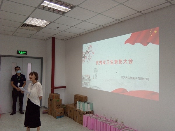 除了看望慰问外,为了奖励工作中奋发努力、表现优秀的实习学生,发挥先进个人的榜样带头作用,鼓励广大实习学生学习先进的个人事迹、继承优秀的工作经验,2021年6月27日上午9时许,荆州市职教中心在武汉天马微电子有限公司生活区食堂三楼培训室,隆重举办了2021年度优秀实习生表彰大会。