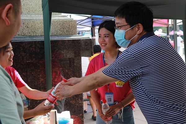 高温送清凉 关爱沁人心 ——校长潘贤君慰问一线迎新工作人员