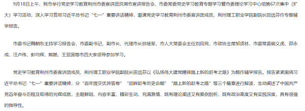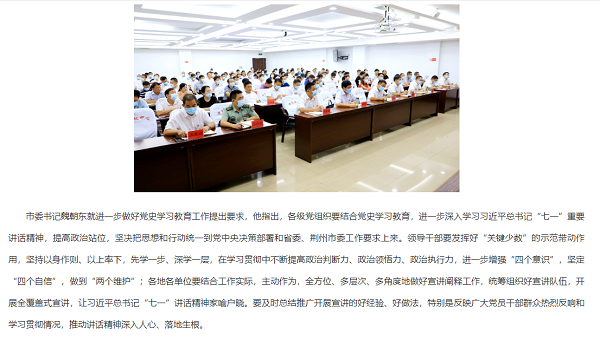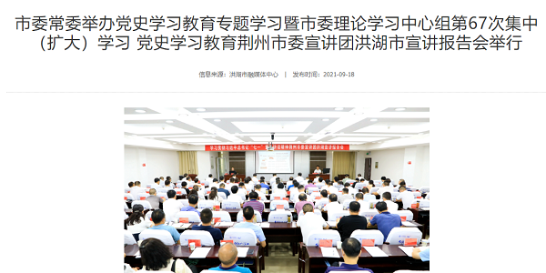 党史学习教育荆州市委宣讲团成员、荆州理工职业学院副校长田远芬在洪湖宣讲习近平总书记“七一” 重要讲话精神