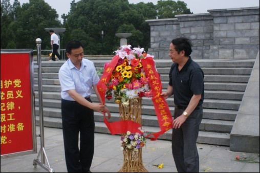 全体党员怀着对革命先烈无限缅怀与无比崇敬的心情,瞻仰了七里坪革命旧址、黄麻起义与鄂豫皖苏区纪念馆和鄂豫皖苏区革命烈士陵园。这些革命圣地是中国革命史上农民暴动和起义的策源地,也是农民运动发展壮大的重要根据地。全体党员在纪念碑前重温入党誓词,向革命烈士敬献花篮。大家在这些革命先烈们曾经"抛头颅,撒热血"的阵地上进行庄严肃穆的凭吊和缅怀时,爱国主义情感得到了升华。