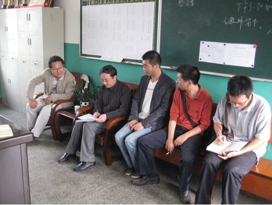 纪委书记黄永平同志进教师办公室和教师深入交谈