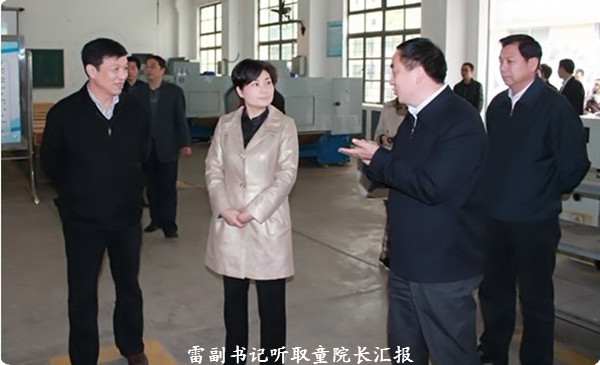 在听取了学院党委书记王海棠、院长童应学关于学院建设和发展情况的汇报后,雷书记对我院近年来建设发展、特别是学院"以人为本,注重质量,突出特色,服务社会"的办学理念给予了充分肯定,并希望学院不断加强内涵建设,努力提高教育质量和管理水平,为荆州实施"壮腰工程"培养更多高素质技能型人才。
