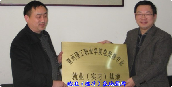 2012年2月28日,院长童应学、评建办主任郭建农、电光源专业教研室主任刘琳前往扬州灯泡集团进行洽谈,签订了电光源专业与扬州灯泡集团校企合作协议,参加了扬州灯泡集团作为我院电光源专业就业(实习)基地的揭牌仪式。童院长还看望了在扬州灯泡集团以"厂中校"模式进行学习的"虹扬光电班"的学生们并带去了教材。