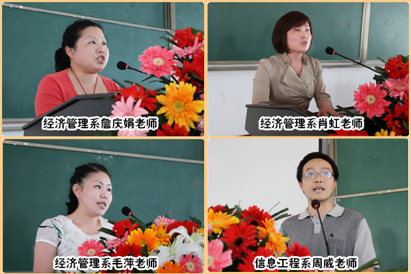 詹庆娟等八位辅导员依次上台交流发言,分享了他们的辅导员工作经验。经济管理系的