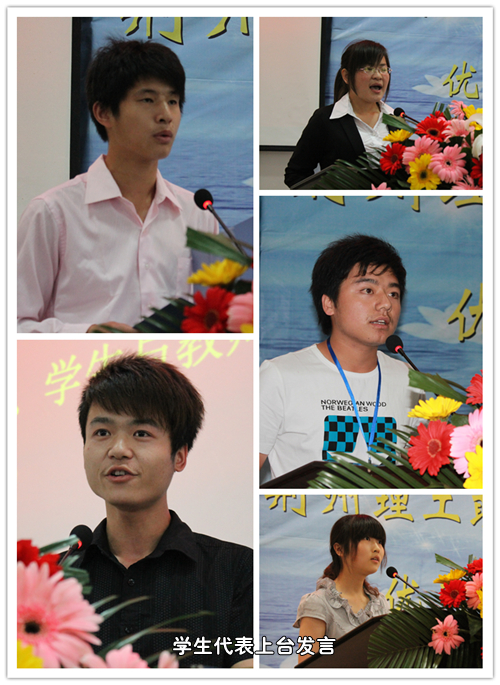 接着,获奖优秀教学信息员代表、优秀学生干部代表、教育教学工作学生协助管理委员会干部代表、分会干部代表分别做了精彩发言。他们结合自己工作和学习的实际,畅谈了自己在"自我服务,自我管理,自我教育"的三自教育活动中,在学生教学信息员岗位上工作的体会和收获,纷纷表示要继续在学院的领导下,团结协作,全力构建学院与学生、学院与教师、学生与教师沟通的桥梁,在学院的教学质量监督和管理工作中发挥更加积极的作用,促进学院教学质量的提高。