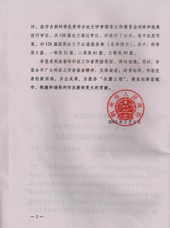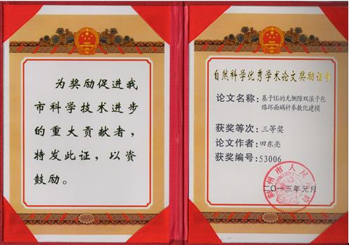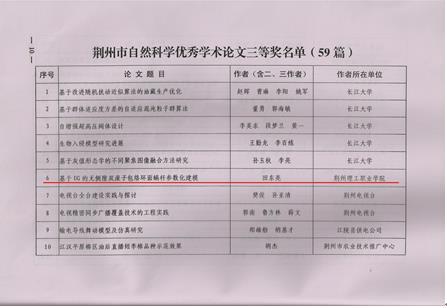 经荆州市人民政府荆政发[2013]6号文件获悉,我院参加荆州市2010-2012年度自然科学优秀论文评审的论文中机械系田东亮老师的《基于UC的无侧隙双滚子包络环面蜗杆参数化建模》一文,经过市自然科学论文评审委员会审议获得三等奖。