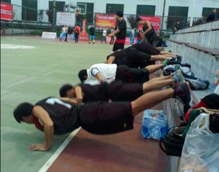 队员做赛前训练